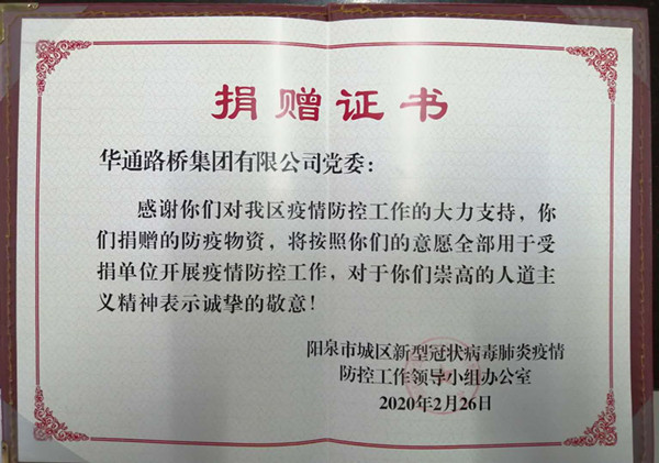 自新冠肺炎疫情防控戰打響以來,華通路橋集團有限公司黨委按照陽泉市、城區非公經濟和社會組織工委、非公企業黨委關于充分發揮組織作用、做好疫情防控工作的安排部署,積極組織動員廣大黨員在疫情防控工作中發揮先鋒模范作用,在做...