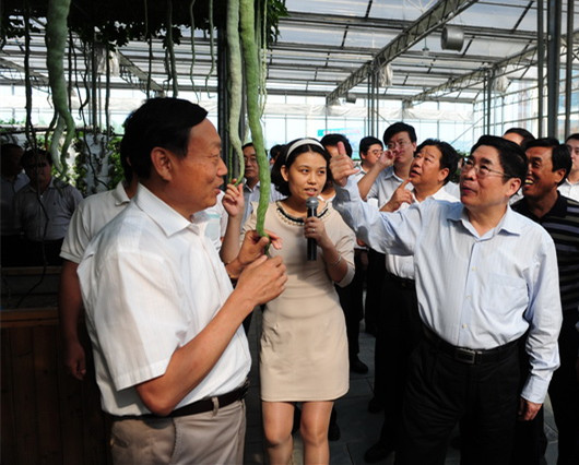 2012年11月22日,時任全國人大常委會委員長吳邦國一行蒞臨昔陽縣大寨華通現代科技農業示范園項目調研。